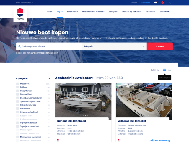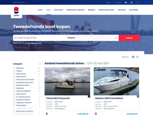 Heb je nieuwe en tweedehands boten in de verkoop? Met deze module kun je gemakkelijk boten in de verkoop publiceren op je eigen website én op Hiswa.nl.