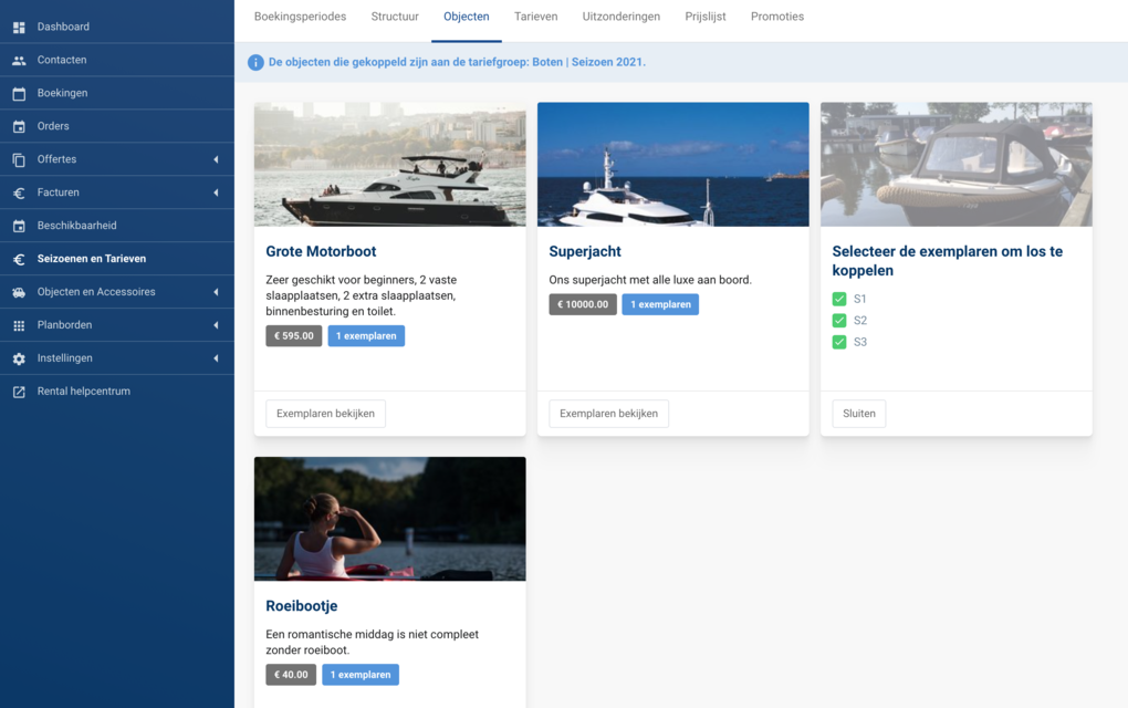 Heb je meerdere exemplaren beschikbaar van een verhuurobject en wil je die online boekbaar maken? Dan kun je de exemplaren gaan koppelen in je Rental.